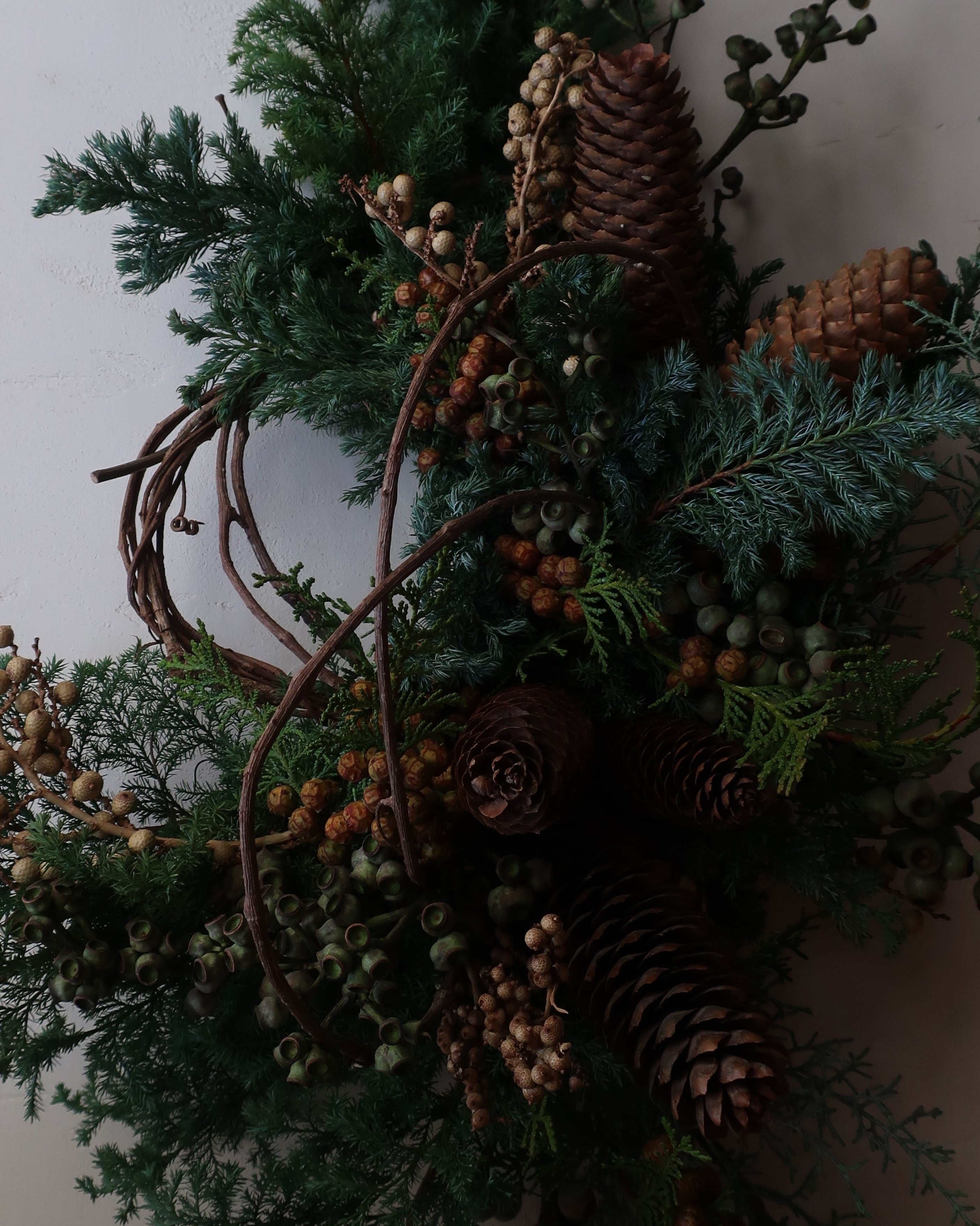 針葉樹とドライ花材の特性上、ある程度ぽろぽろと欠けながらの到着になるかと思います。