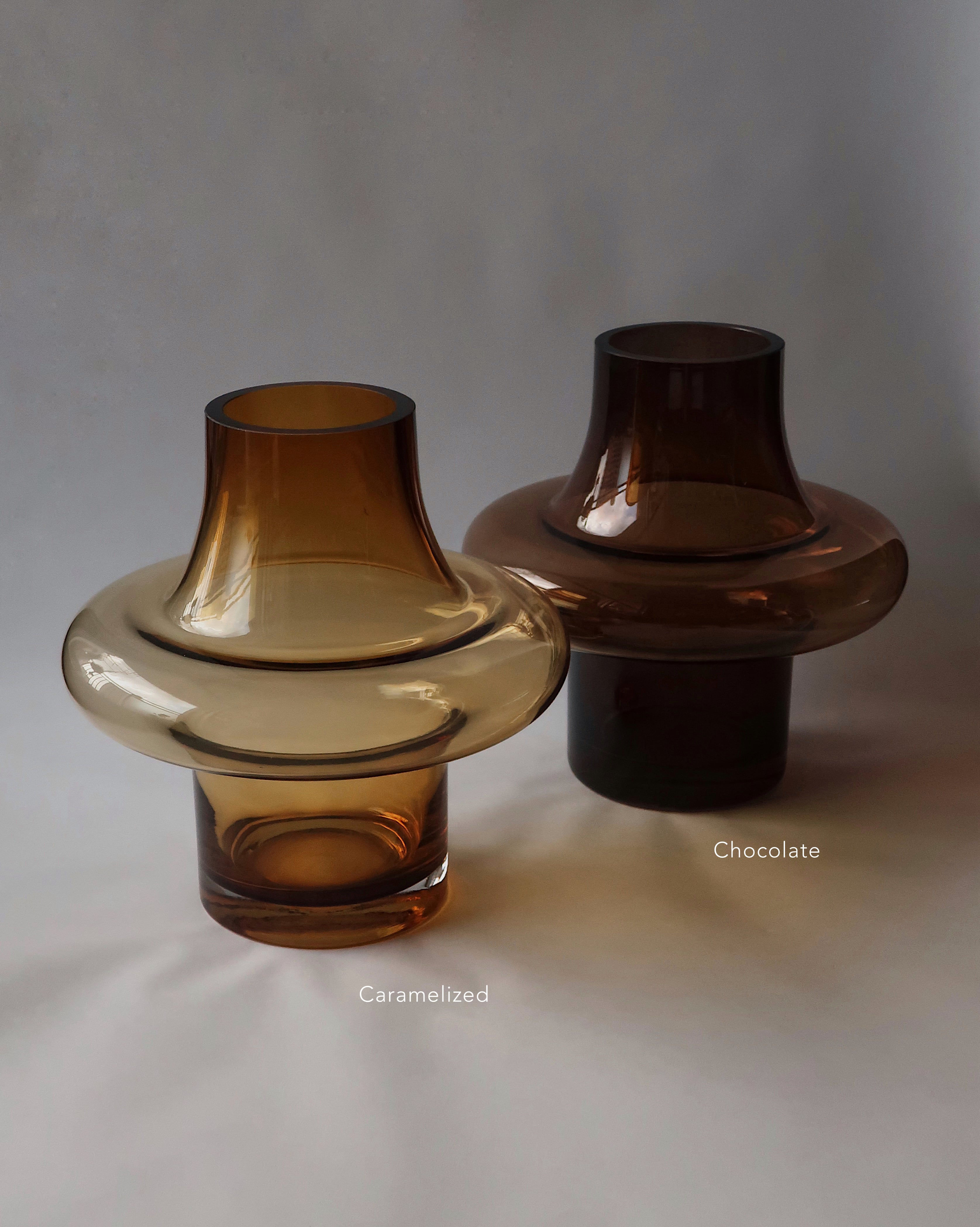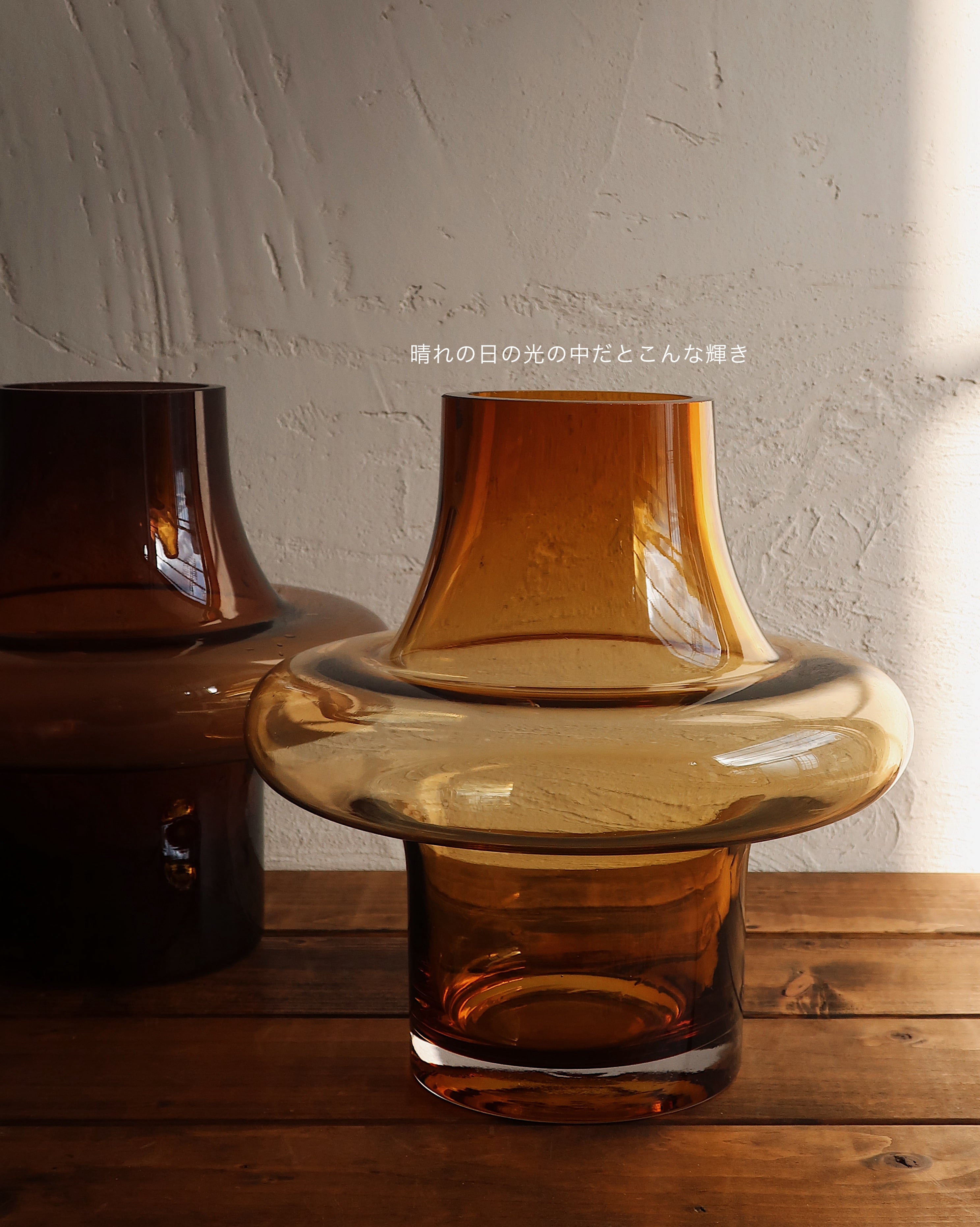 ぽってりフォルムのガラス製花器。